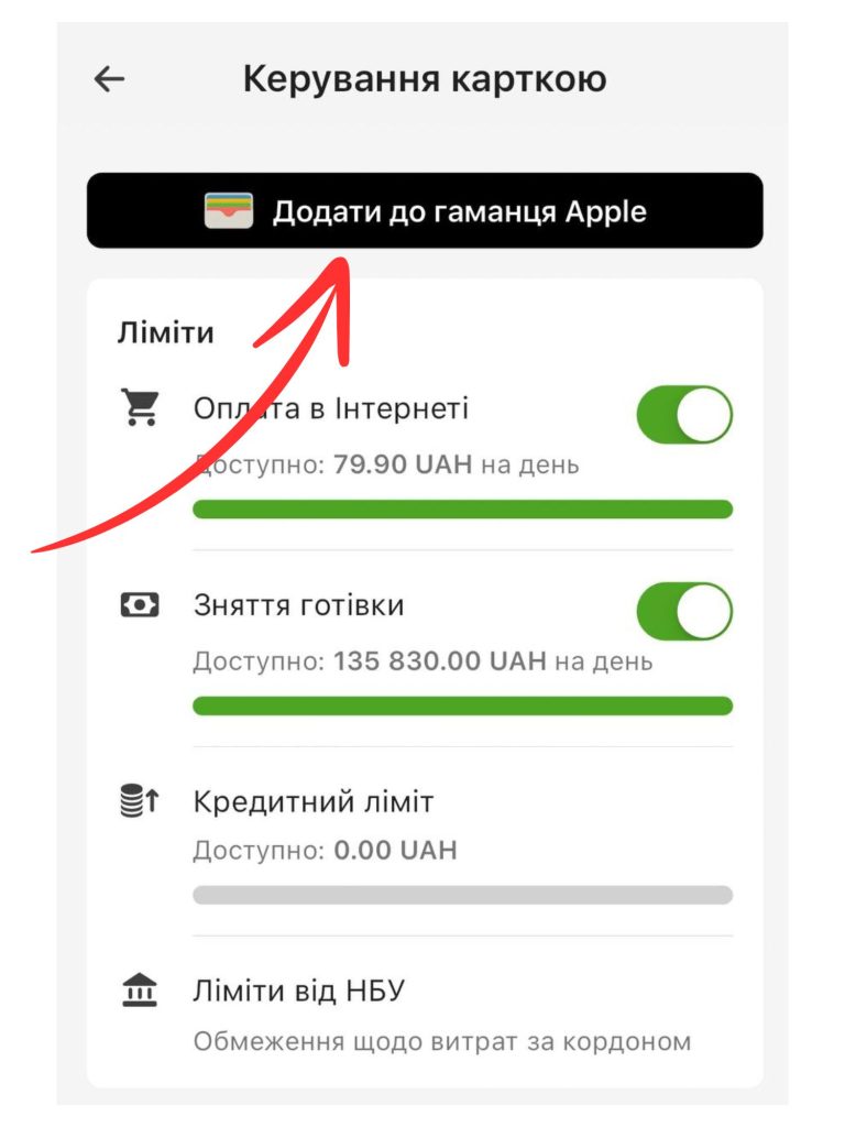 - Вибір картки: Виберіть картку, яку бажаєте додати до Apple Wallet.