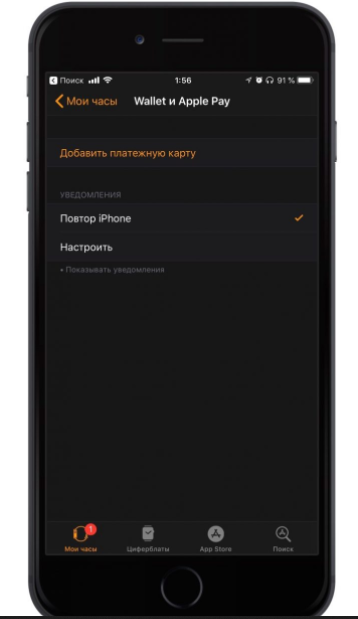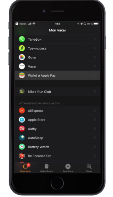 Для добавления карты в систему умных часов, откройте приложение Apple Watch на мобильном устройстве, затем – Wallet и Apple Pay. Нажмите на кнопку добавления карт. Добавьте карту, отсканировав ее с помощью камеры.